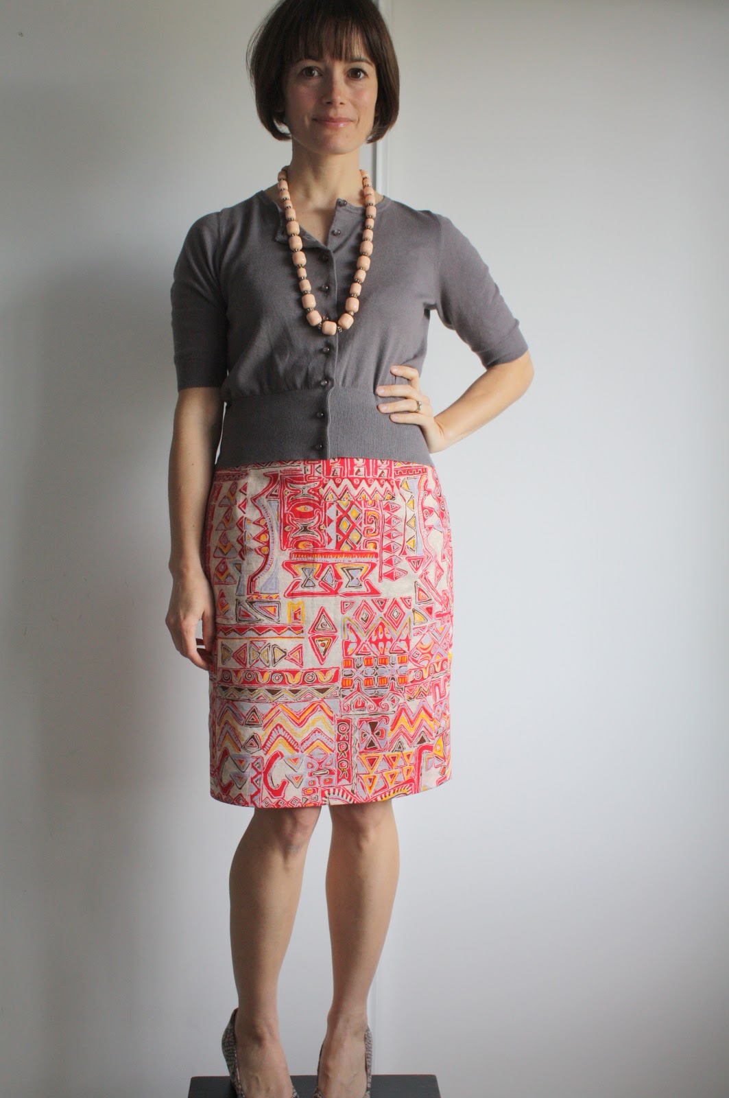 The final, 5th skirt came about as I was moving my unsewn winter fabrics back into storage and taking out my summery fabrics from last year in preparation for a new season of sewing. I remembered wanting to make a pencil skirt from this crazy vintage Hawaiian barkcloth after sewing a