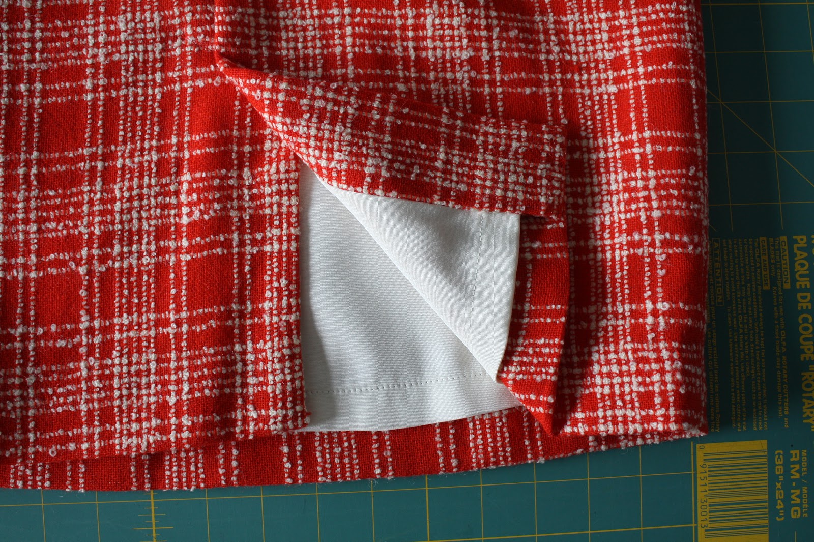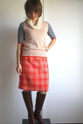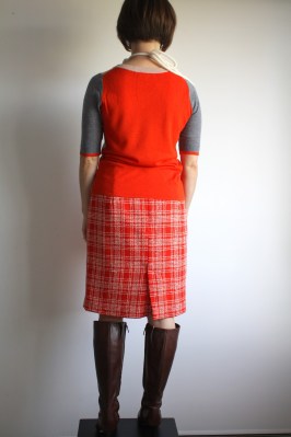While buying the black fabric, I gave in to a temptation I’ve had for years for this nubby, Chanel-inspired vintage red and cream plaid fabric. At $19/ yard, I don’t know why I waited so long (only a yard is needed, after all!). I lined this 4th skirt with a heavyish 4-ply silk, because why not?