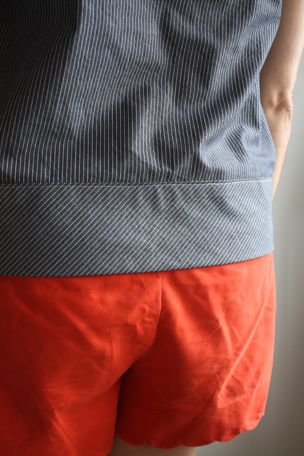 All in all, I am really pleased with this top. The fit issues were resolved easily, and the resulting top is amazingly wearable. This style fills a huge gaping hole in my wardrobe, which is what to wear with shorts. If my queue wasn’t already enormous, I would buy fabric and sew a ton of these…but all in double gauze.