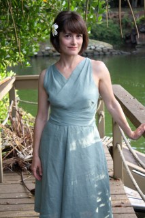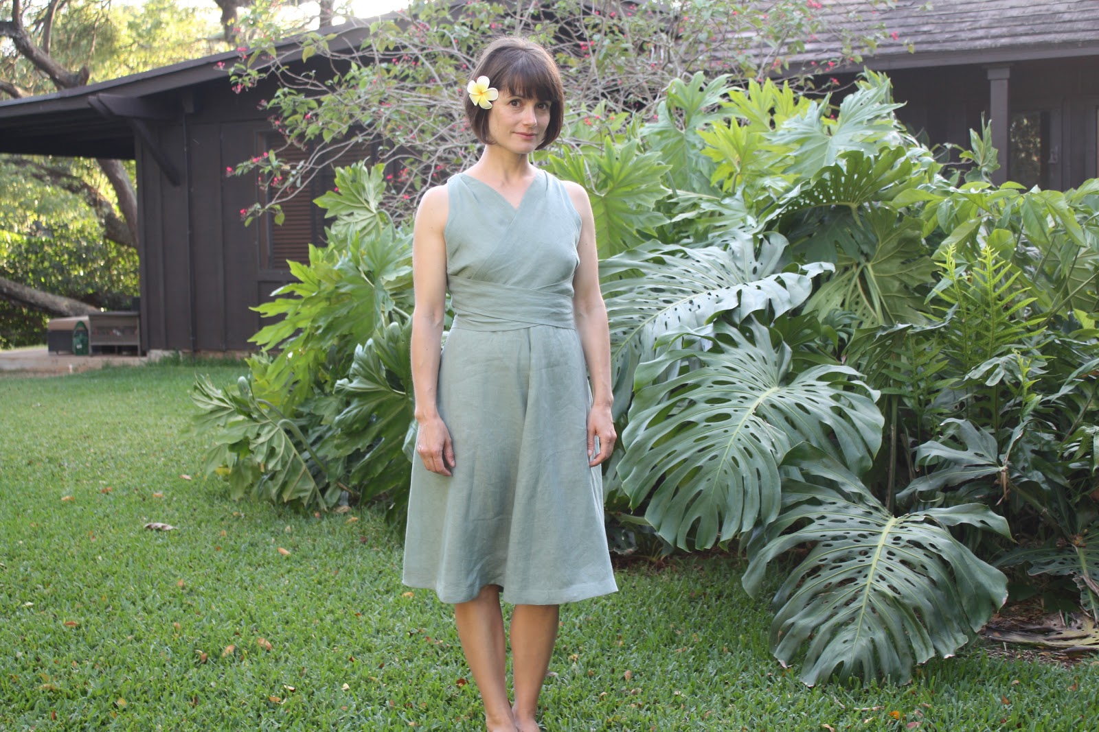 A couple of weeks ago, my family took a trip to Hawaii, which nicely coincided (with a slight extension of deadlines–thank you, Joie 🙂 with my latest Britex project. A lovely linen sundress was the obvious choice; after all, doesn’t everyone sew new garments before going on vacation?!
