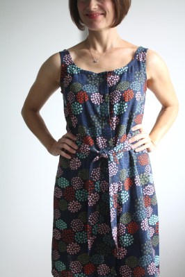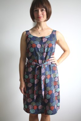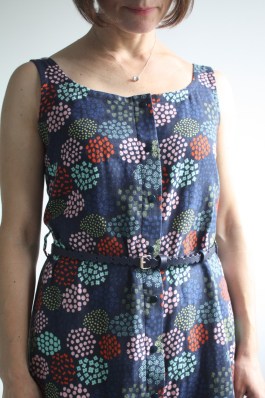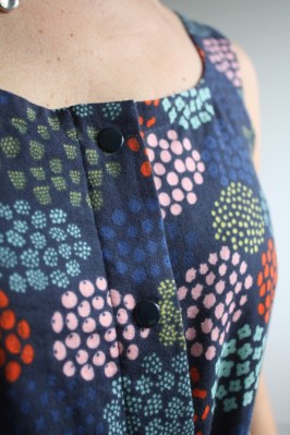 This amazing double gauze by Kokka ended up in my basket, originally intended to be another Hayden top. Somehow, I must have requested the wrong amount and when I got home, I realized I had 2.5 yards of the stuff! Change in plans–the fabric was going to be a dress! At 45″ wide, it was enough, with not much left over.