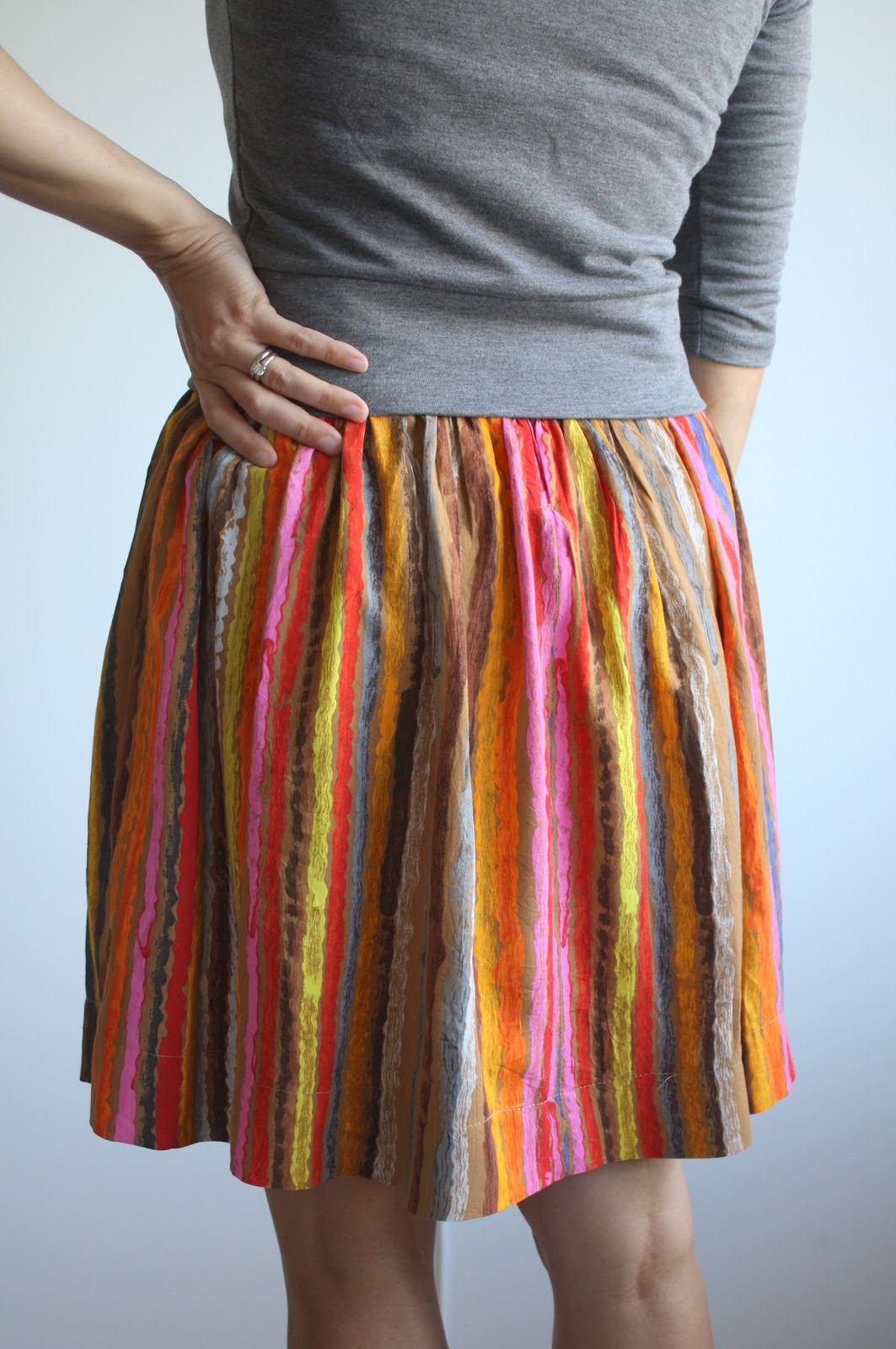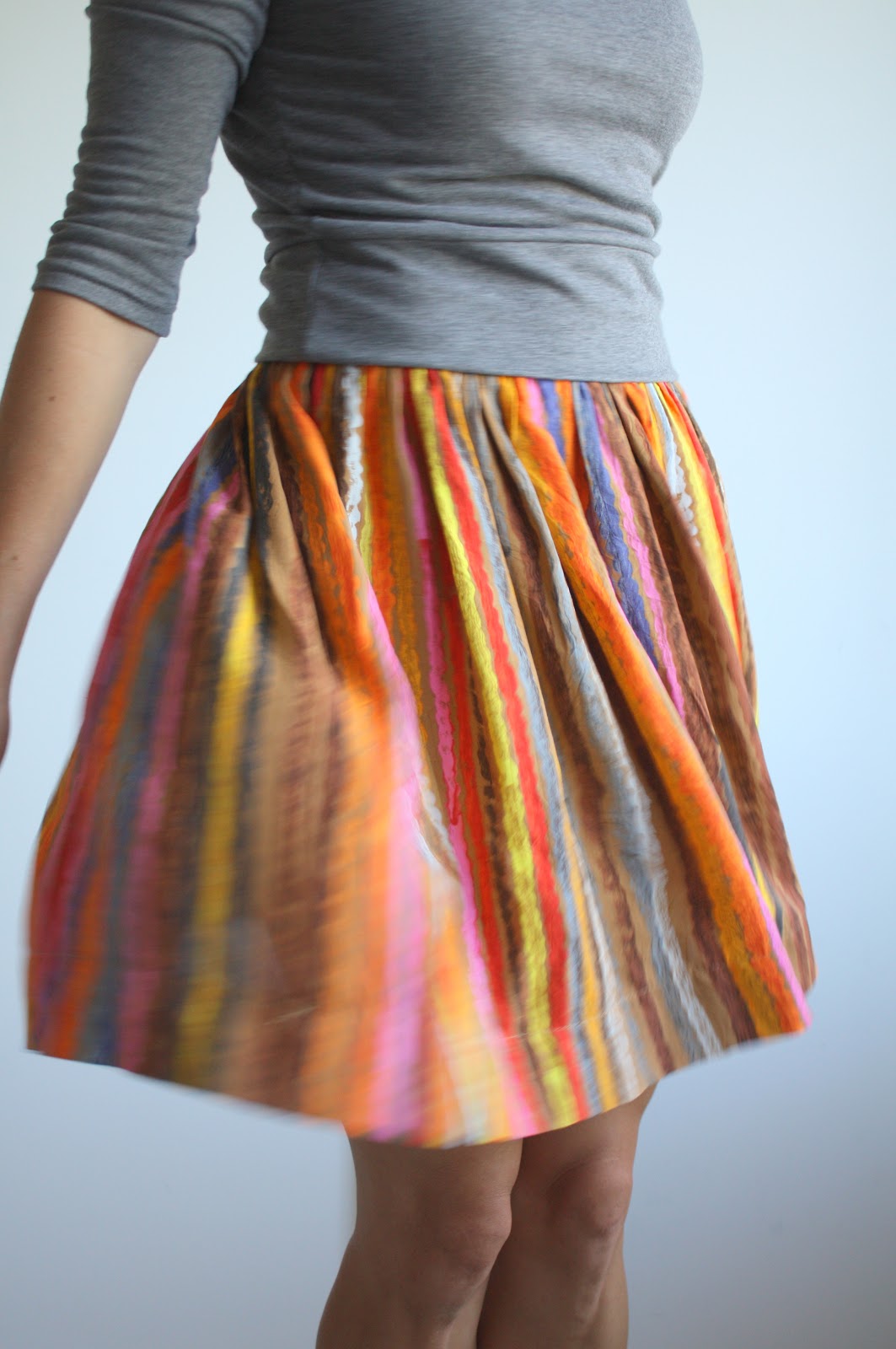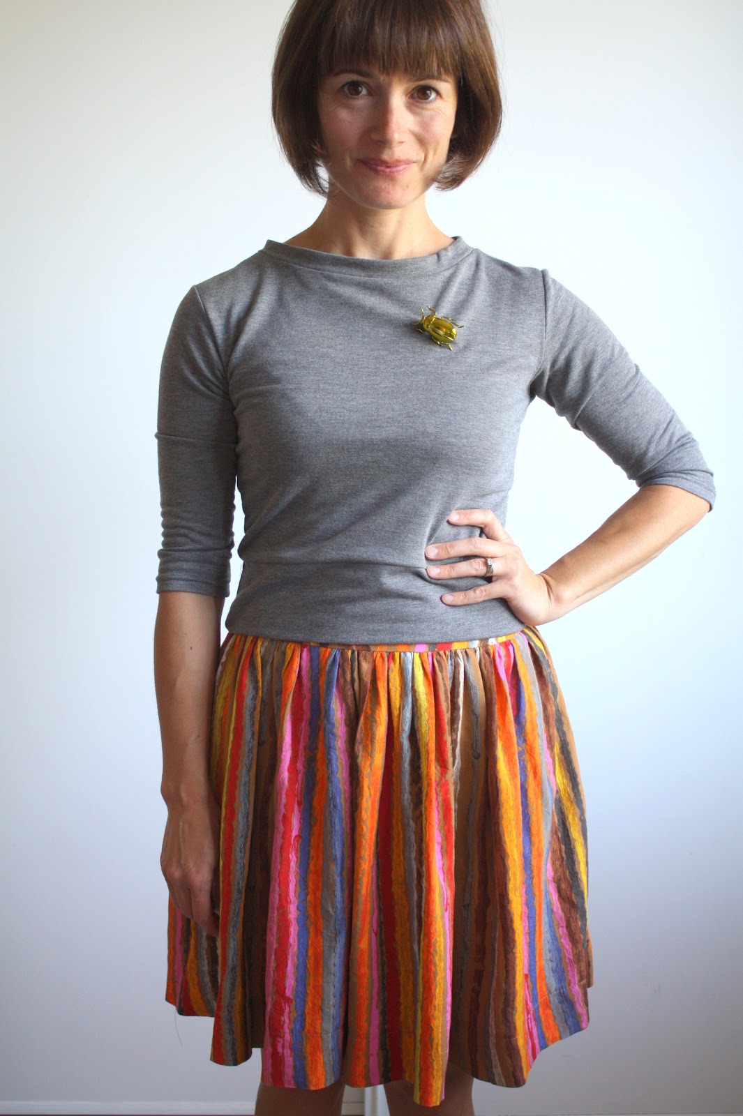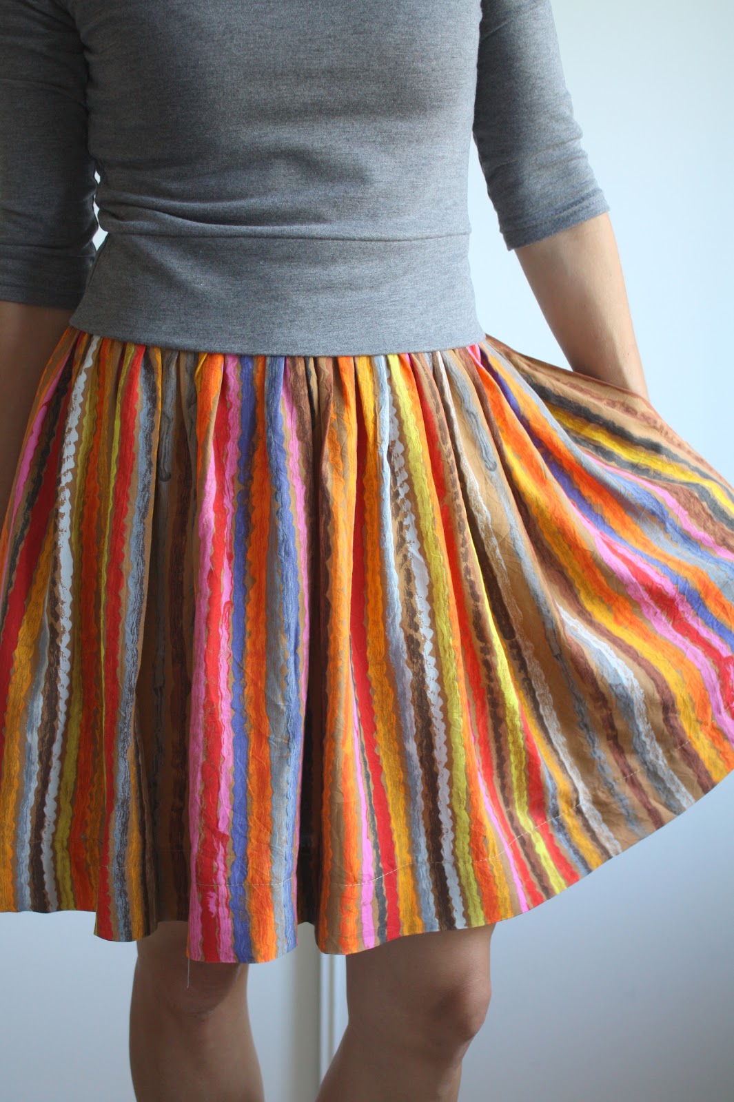 The lightweight rayon allowed for huge volumes of gathers without being very bulky, which makes the skirt extra swingy. I accidentally walked in front of a fan at a dinner party and nearly had a “Marilyn moment”. But it’s fun, and super light–perfect for summer.