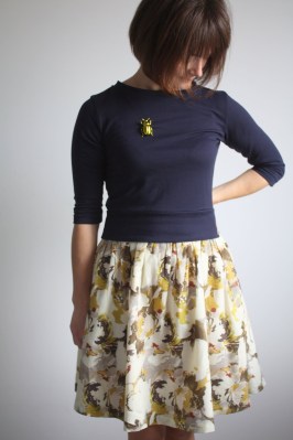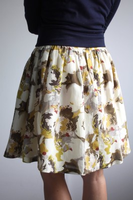 For the skirt, I splurged and bought some silk/cotton Liberty voile. It’s lovely and Fall-like, but very sheer, so I added a lining of cream colored silk/cotton voile.