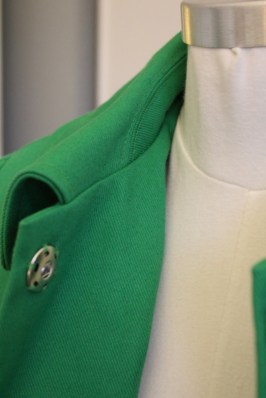 The pattern has some thoughtful details, such as side seams moved forward to allow for a more ergonomic placement of the pockets, a different pattern piece for the upper and under collar (important for a good roll), and a collar “stand” that also contributes to the pleasant shape.