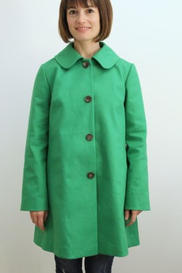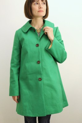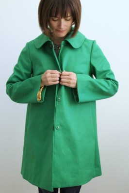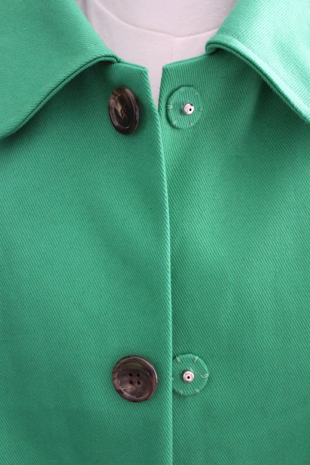 Yep, the green color is a bit bold. Online it looked more “spring green” but in person it looks more “shamrock green”. Regardless, the color is definitely growing on me. It’s from Mood and listed as a water-resistant cotton canvas, intended for outdoor cushions and whatnot, but it is a great weight for this type of jacket.