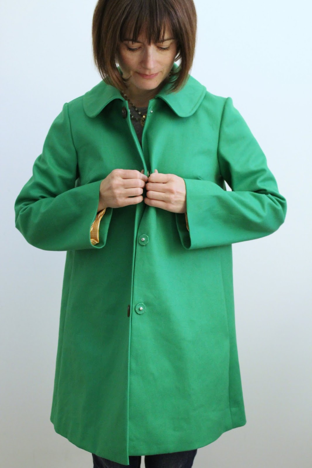 This is so cute! I love the color! Since im in SoCal i never thought to make me a rain coat. And this morning i had to run out with a flannel scarf over my head because its raining. You never cease to inspire me! I will have to head over to mood to get some of the canvas!