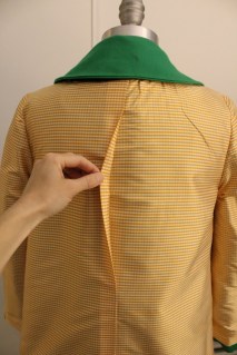 Here are the jacket innards. The sleeve hems are sewing on the machine (using a bag-type method) but I hand sewed the hem, with a pleat for the lining.