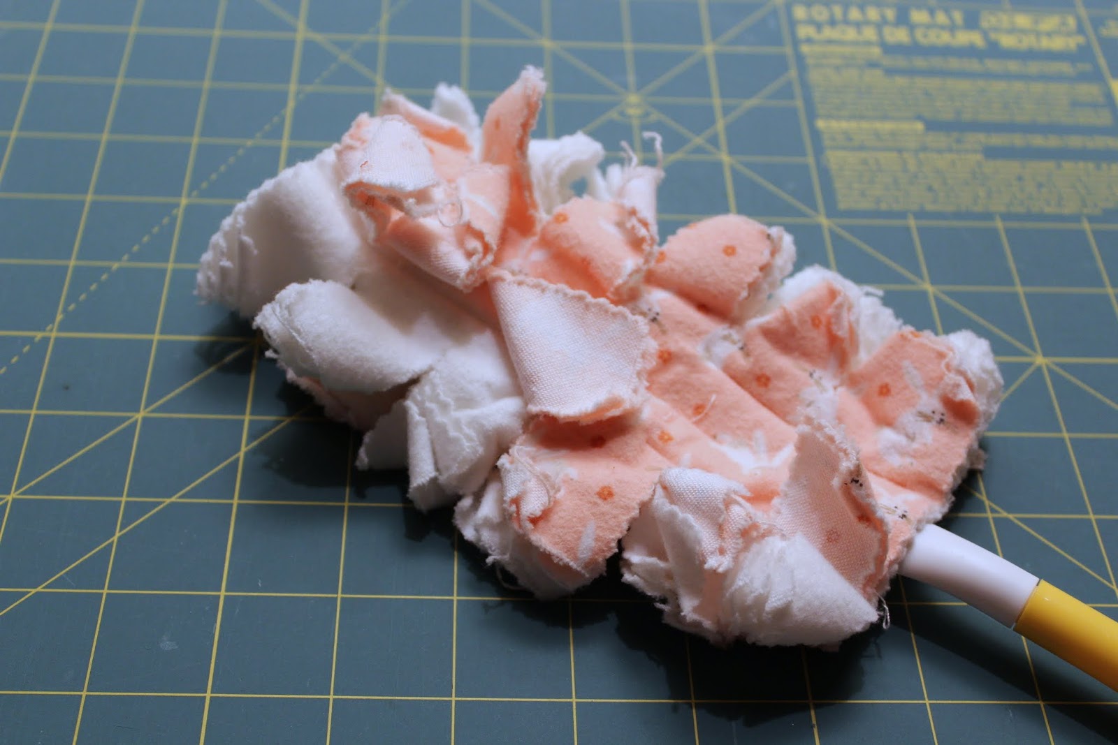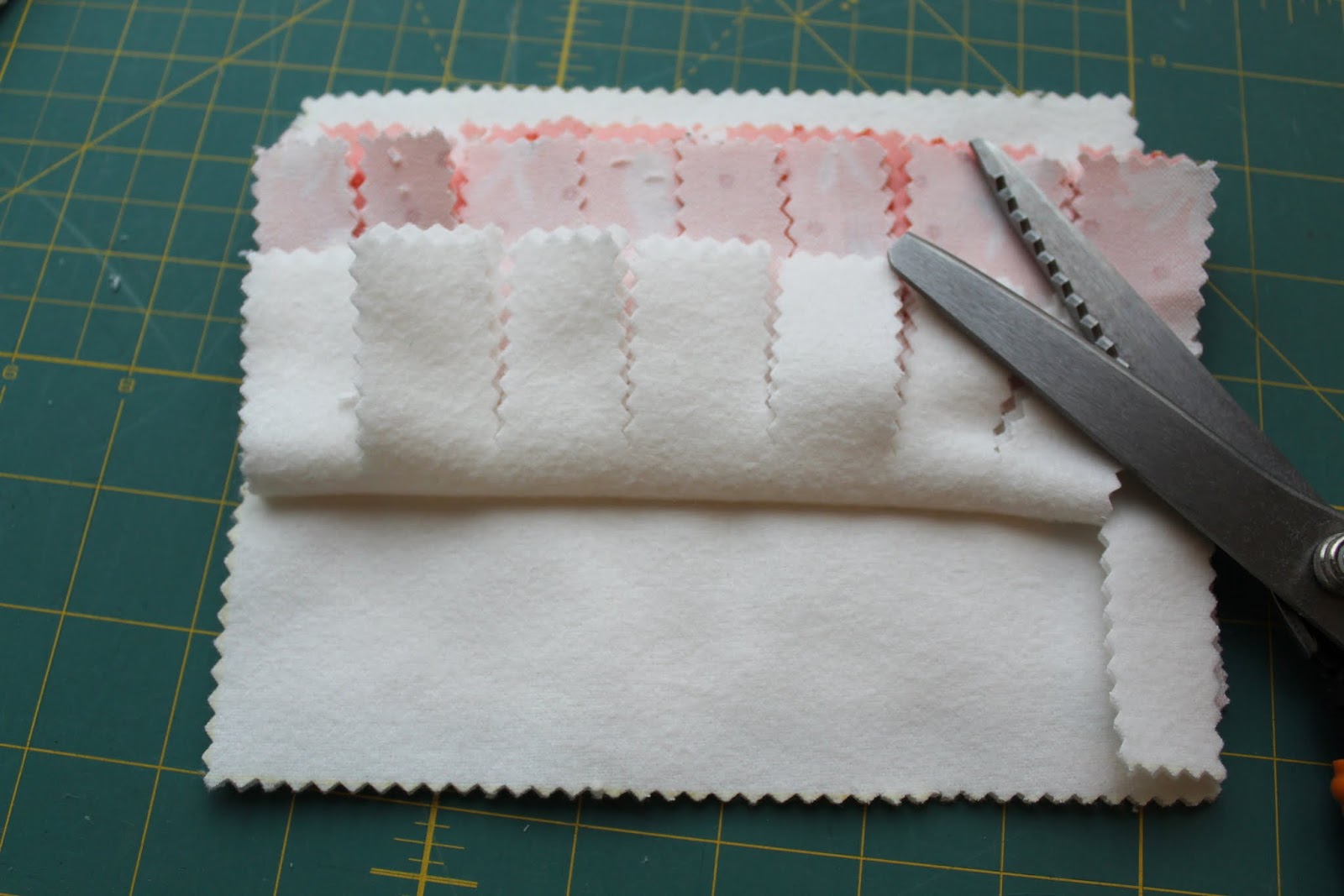 Snipping through the layers (2 at a time) with pinking sheers makes the special dust-catching shape of the original Swiffer dusters.