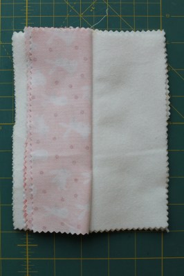 Pushing the top and bottom two pieces of flannel out of the way, I then sewed about 5/8″ from the fold line on both sides to create the casing.