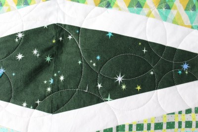 Since the only thing worse than sewing the quilt piece together is the actual quilting part, I “subcontracted” that part out! Local long arm quilter, Melodee Wade, who also quilted my older son’s quilt, did the work. She does a beautiful job and in hardly any time at all! She also trims the edges so all I had to do was apply the binding–pretty awesome.