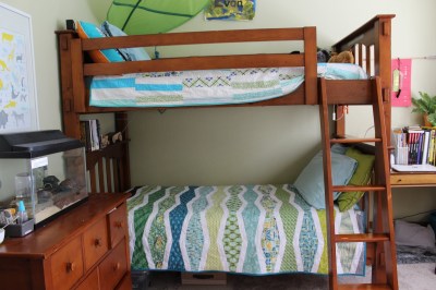 I love both your quilts! My sons are older and I just updated them to full size bunk beds. What a pain to change sheets! Way worse than their twins.