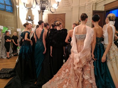 During our first few days in Paris, before I even was acclimated to the 9 hour time difference, we were thrown into working behind the scenes at Paris Fashion Week. Our group of students worked as “dressers”, dressing the models in haute couture gowns and garments, for 5 different shows: Galia Lahav, Georges Hobeika, Tony Ward, Alexandre Vauthier, and Zaid Nakad.