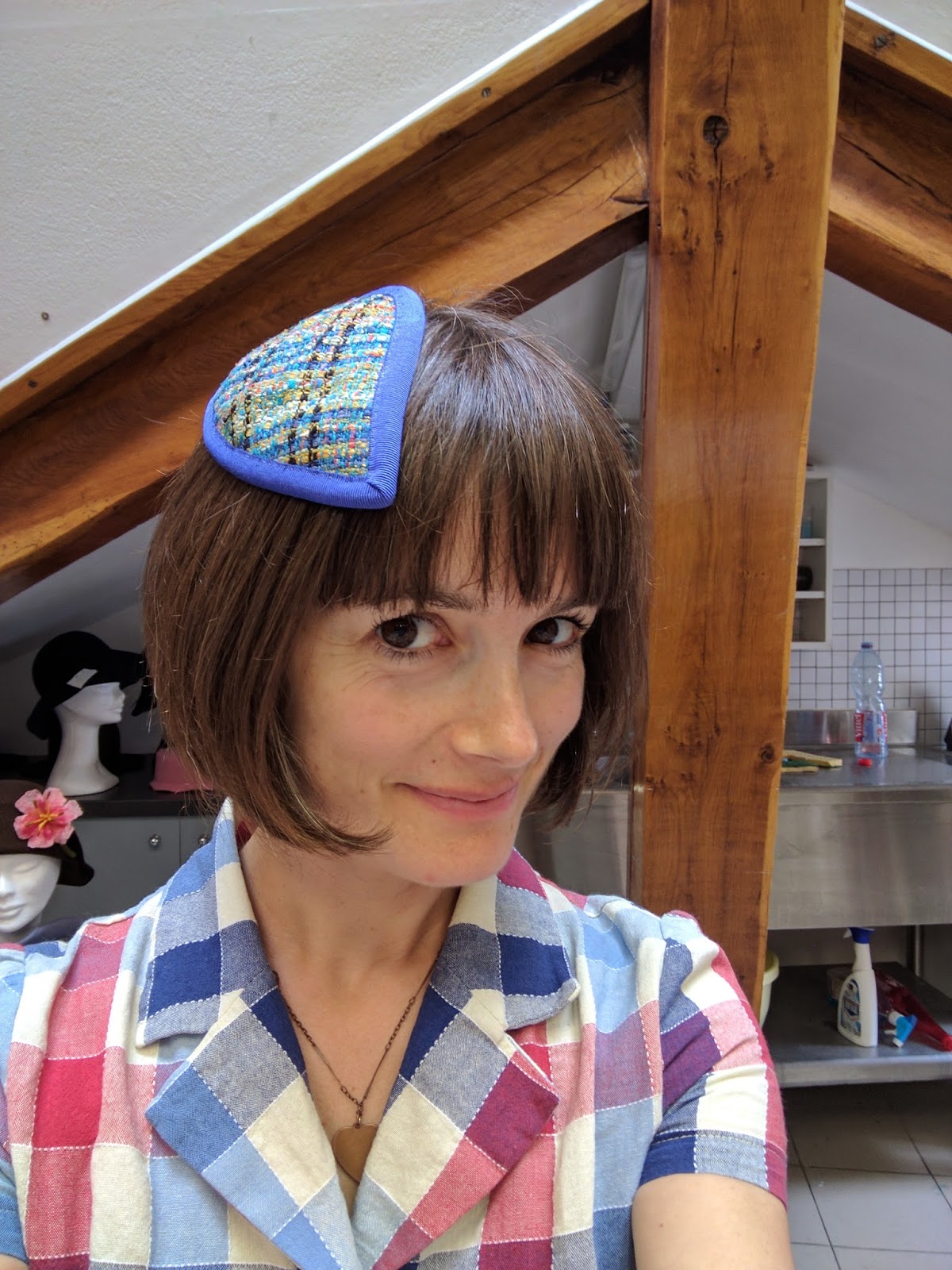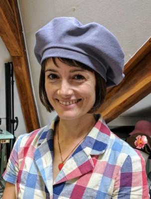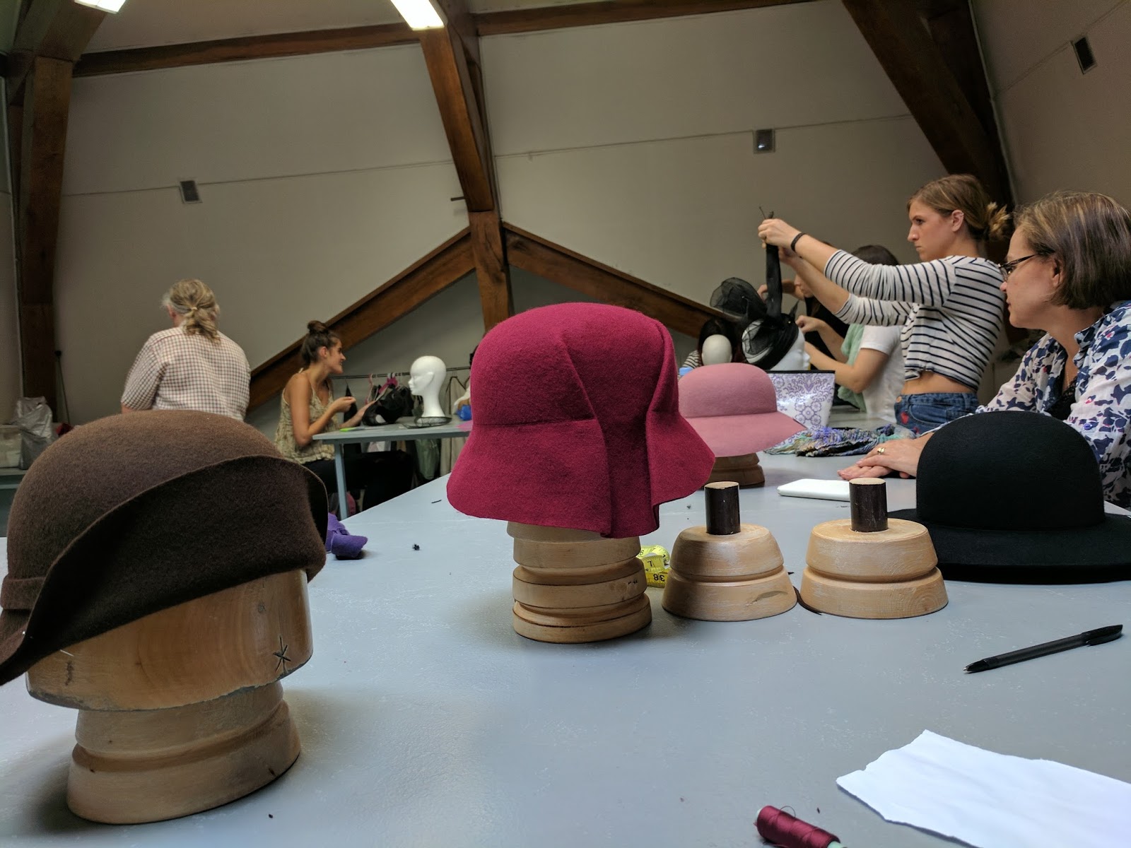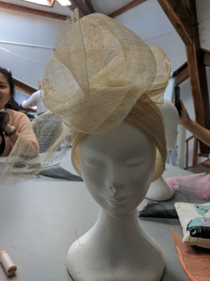The second day of hat making included sewing a felt beret and a tiny fascinator. With the floppy felt, our berets looked a bit more like chef’s hats!