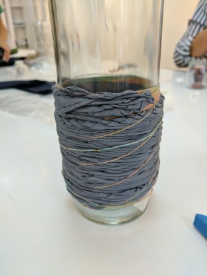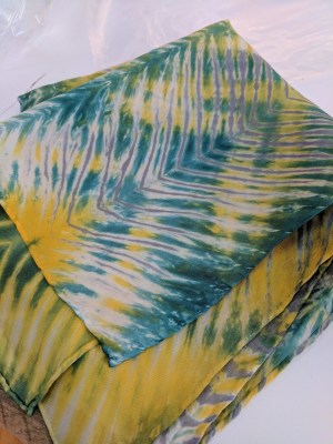 We had the opportunity to dye a second scarf, using whatever techniques we wanted to try. Truthfully, I don’t remember exactly what I did here, since the first go was unsuccessful and I went back to do more to it. The end result is pretty, though!