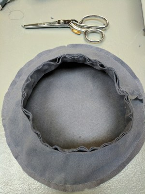 This itty-bitty fascinator (below) took 4 hours of sewing time! And, quite unfortunately, I must have left it in Paris because I couldn’t find it on our last day of school. Wahh! Here are some photos of the process….first stretching the fabric over the form….