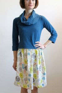 As for the skirts, the first is a super simple knit dirndl with an elastic waist. Nothing fancy, except the pretty fabric 🙂 I didn’t even put in pockets (poor decision, as usual).