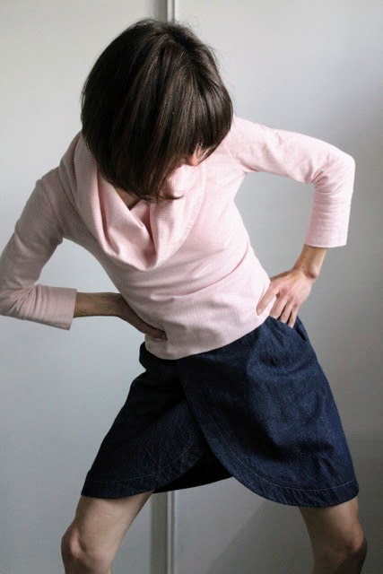 I made these two cowl neck tops a few months ago, but felt compelled to create some cute skirts to wear with them as the weather warmed up. Shazam! Two new outfits for spring, which can be mixed and matched!