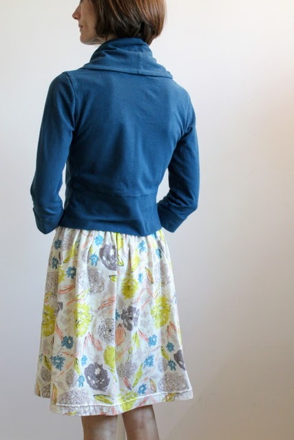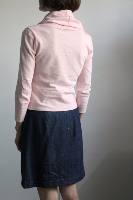 I topstitched the skirt with a light gray thread (sorry, no super close ups!), but it is not lined like the wool one I made previously.