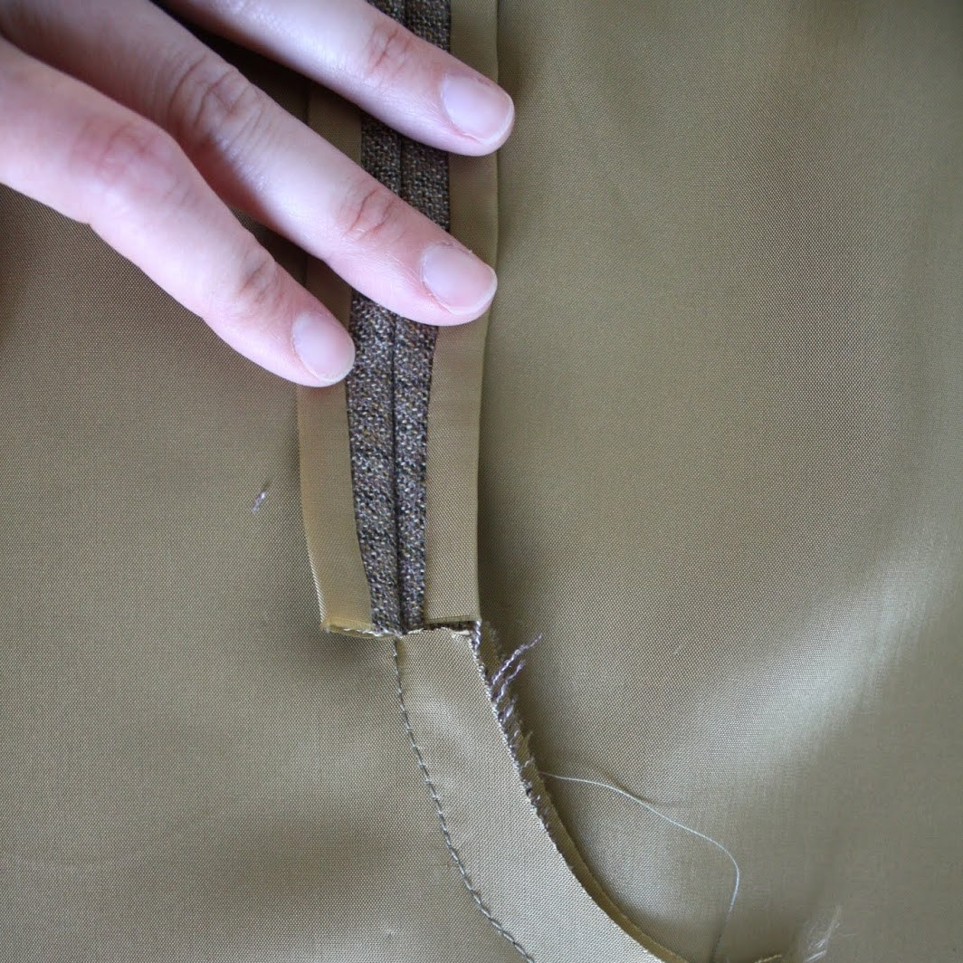 For the hem, I used rayon seam binding to finish the edge and then used a blind stitch (only catching the underlining) to hem.