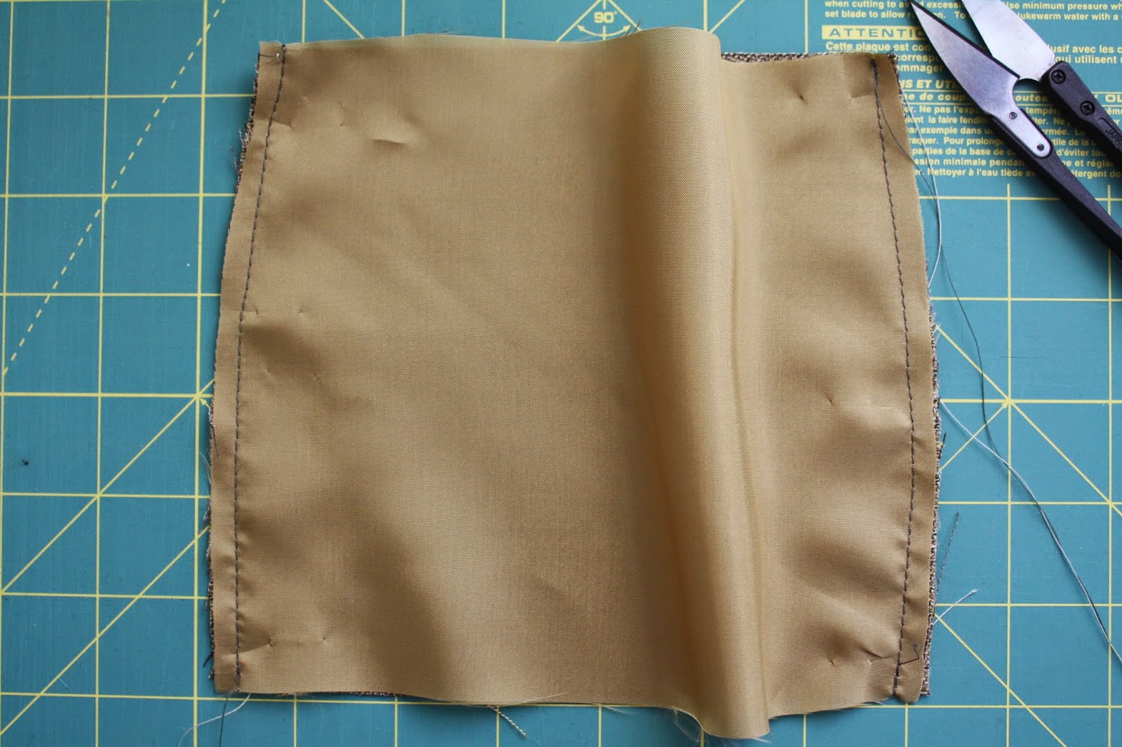Once pressed on both edges, the fabric and underlining pieces should be even, with no bunching, pulling or creasing. Since you haven’t trimmed any of the fashion fabric from the sides, you can sew the pieces as normal, with a 5/8″ seam allowance.