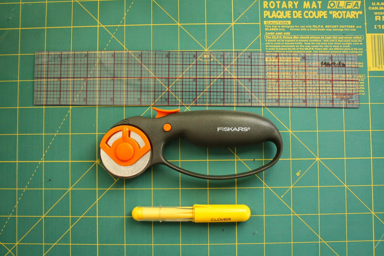 In addition to everything else you need to sew a skirt, you’ll also need an accurate clear ruler, marking chalk (I LOVE this Clover roller chalker) and your rotary cutter.