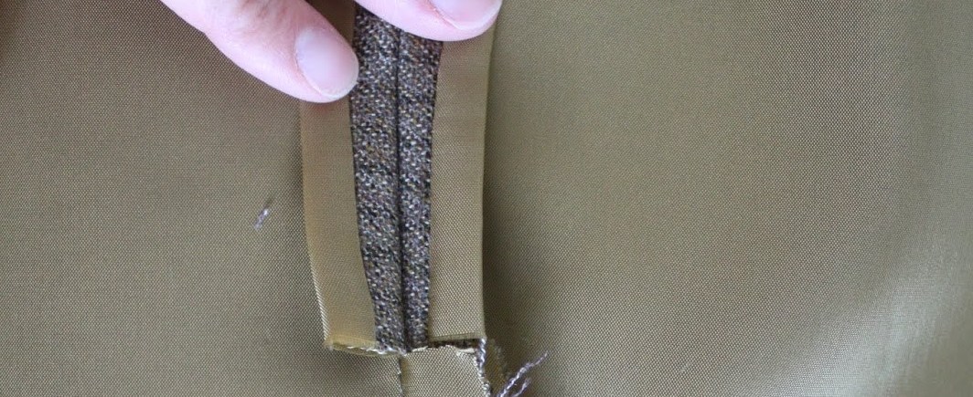 For the hem, I used rayon seam binding to finish the edge and then used a blind stitch (only catching the underlining) to hem.